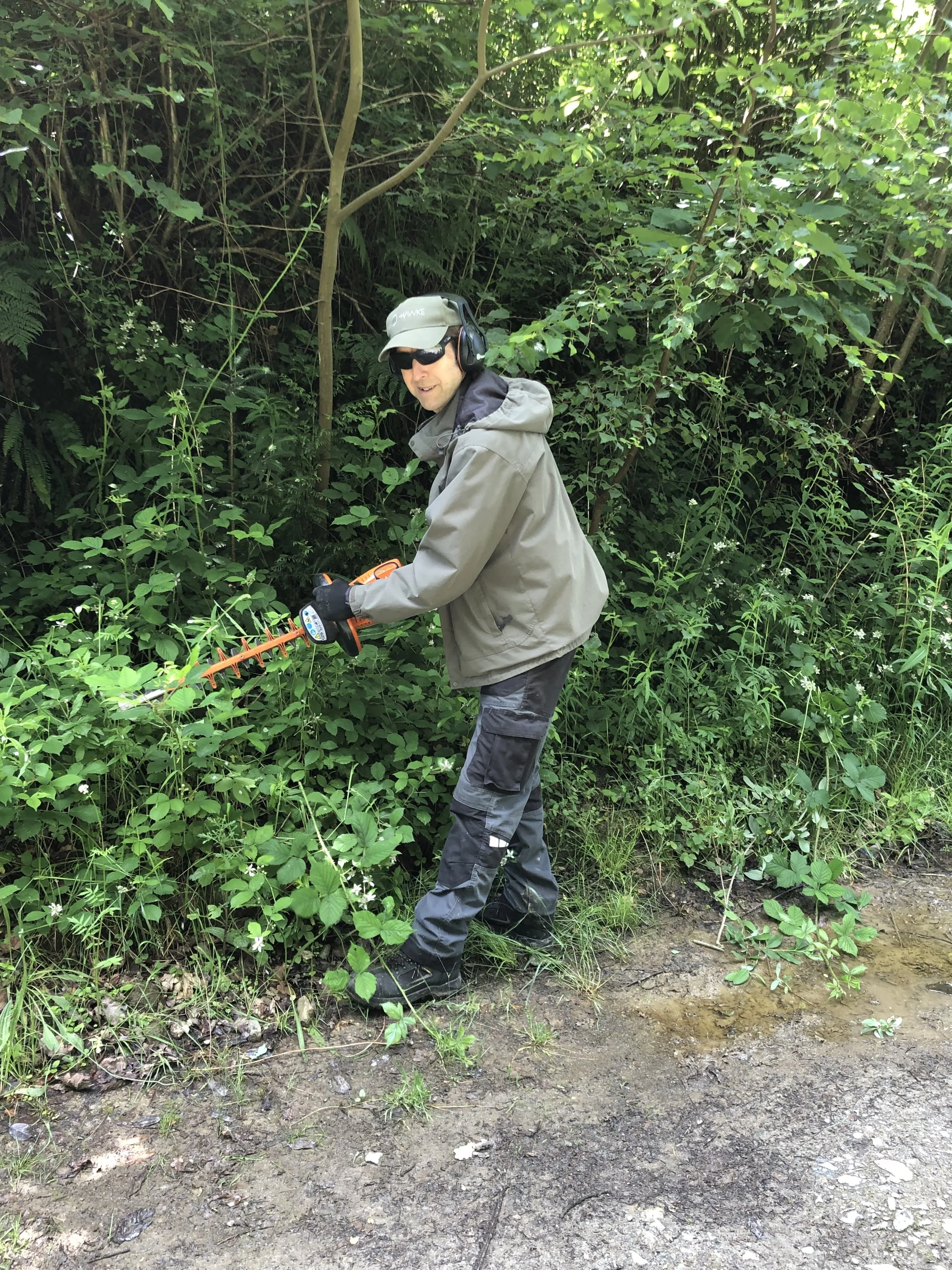 June’s Work Party was all about readying High Wood for the Summer Fair. The volunteers worked really hard putting up bunting and signs and trimming back some over growth.