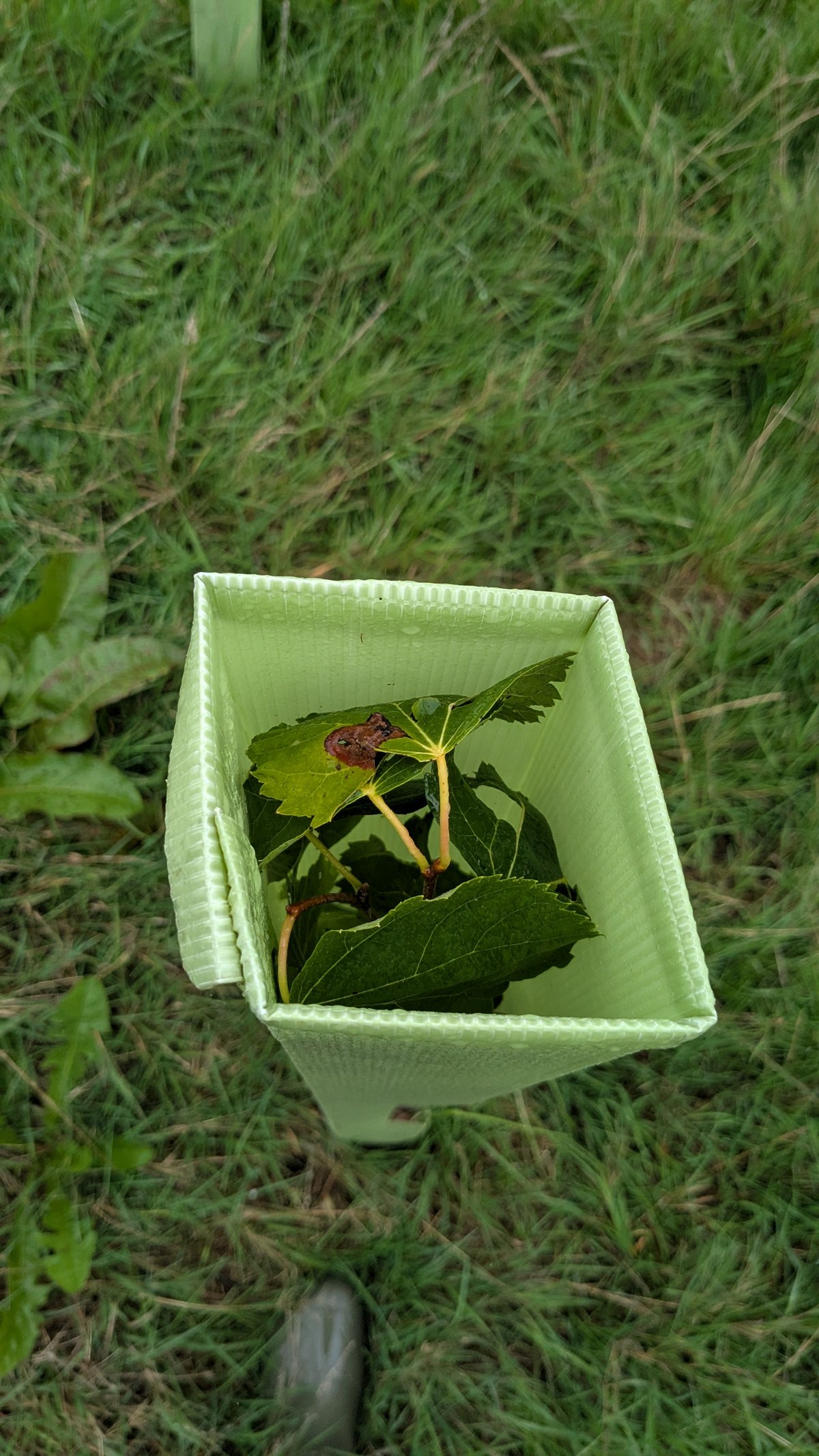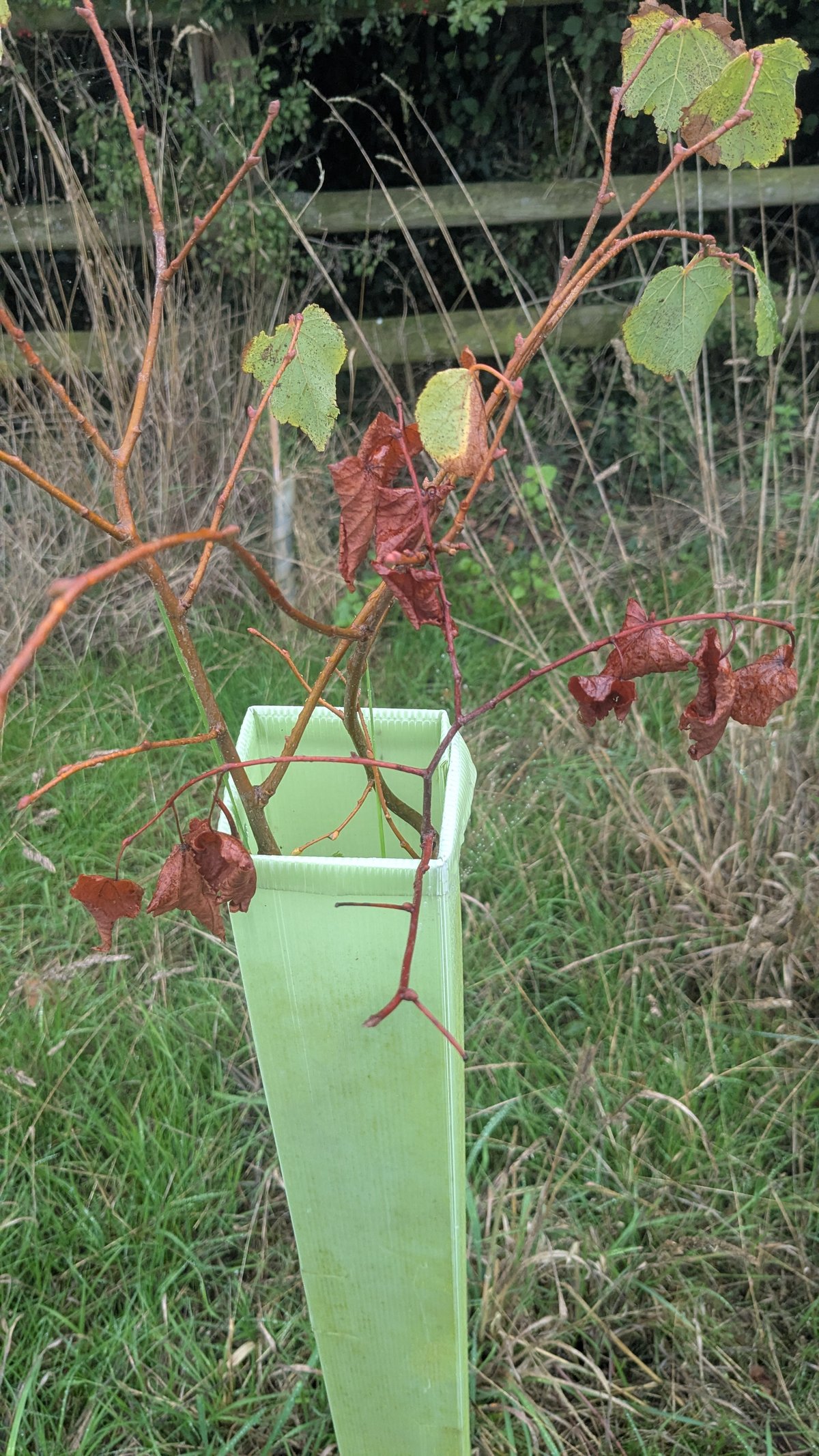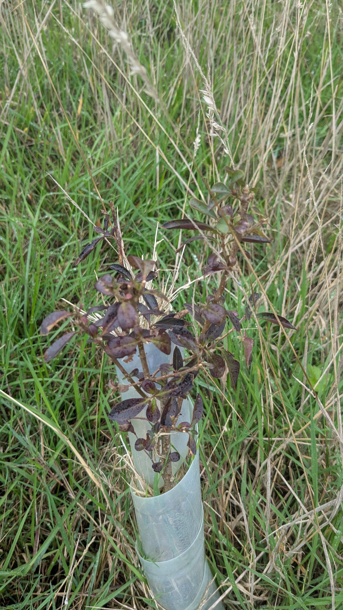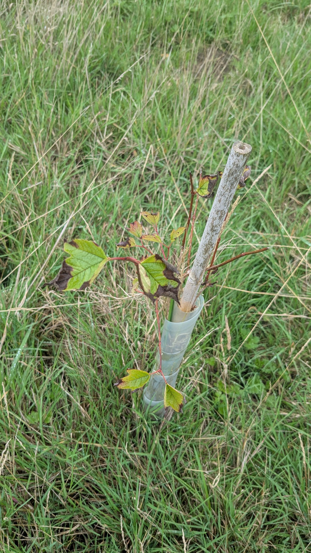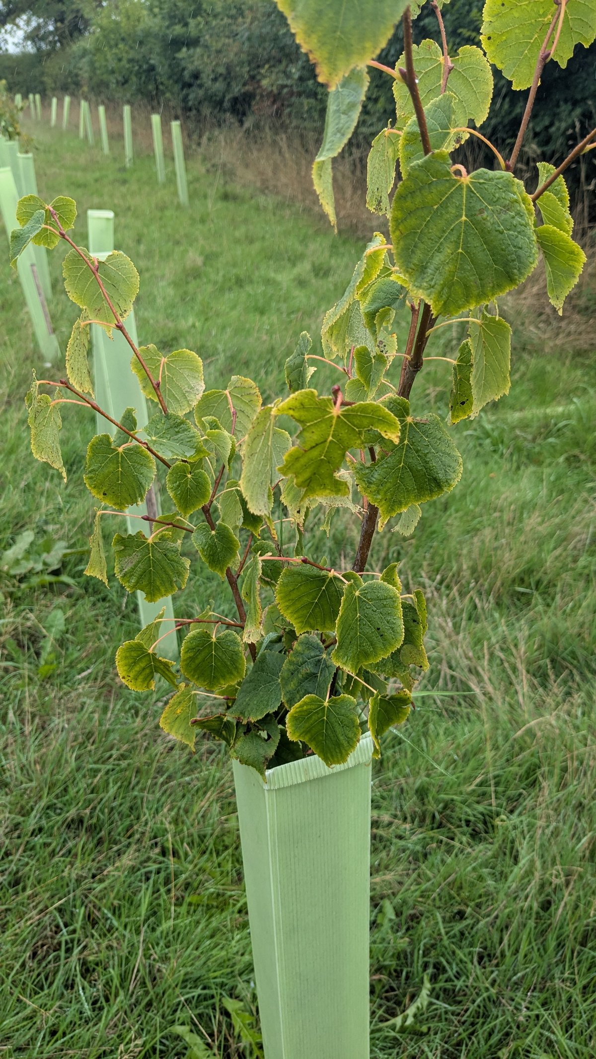 Corporate volunteers from Uddeholm UK helped with this. We also had a group of Vegan Runners from the Bristol area also on the Saturday and some local volunteers on the Sunday. We planted two shelterbelts next to the road to supplement the existing hedgerow.