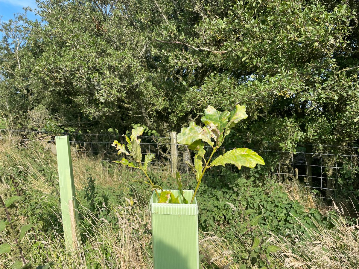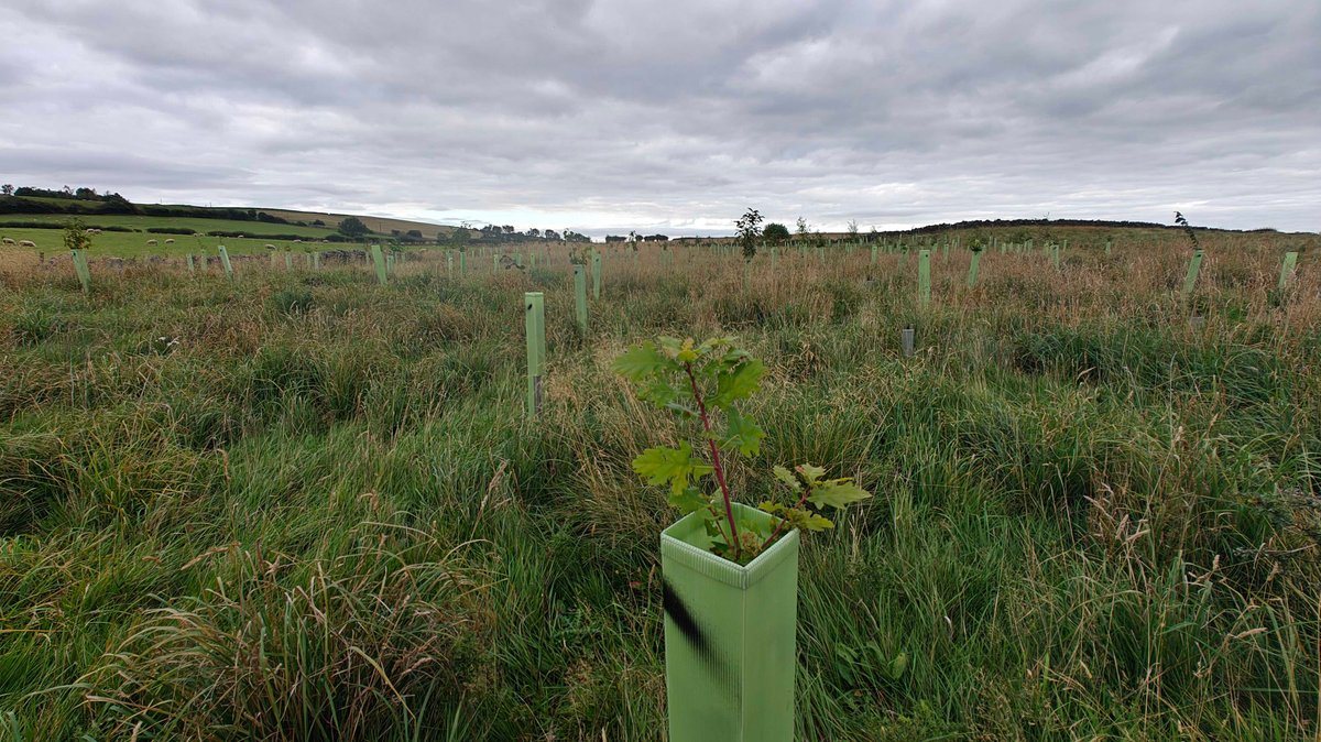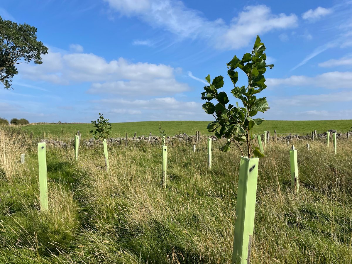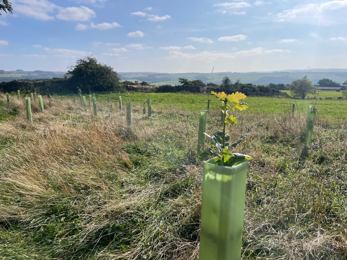Trees were planted as bare rooted 40-60cm whips and were protected with 1.2m tree tubes and stakes in clusters of the same species, randomly spaced. Shrubs protected with 75cm shrub guards and stakes. Random gaps were left to provide open areas in the woodland.