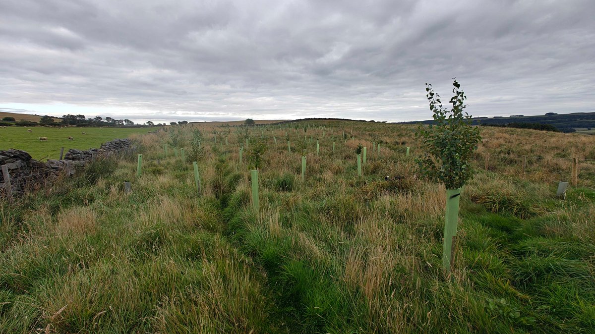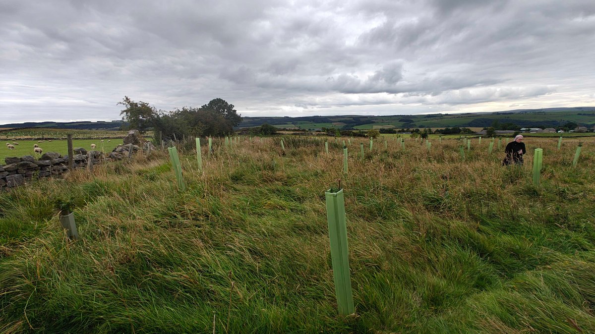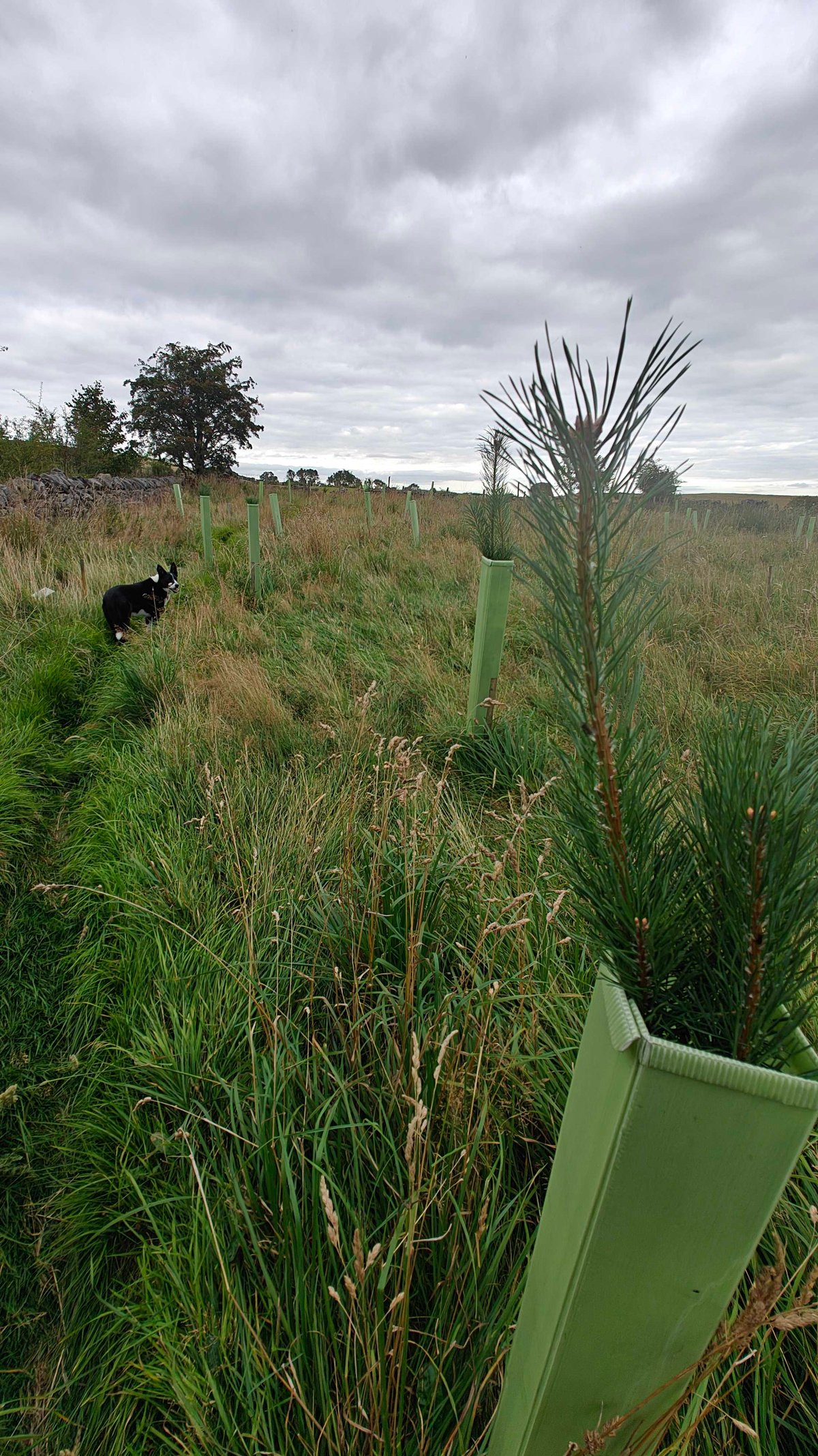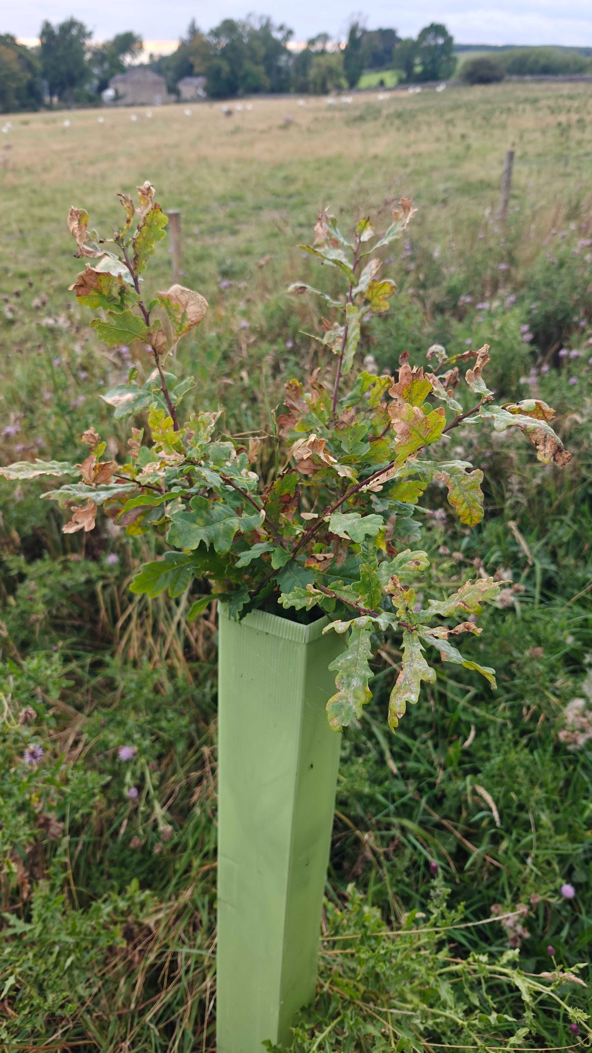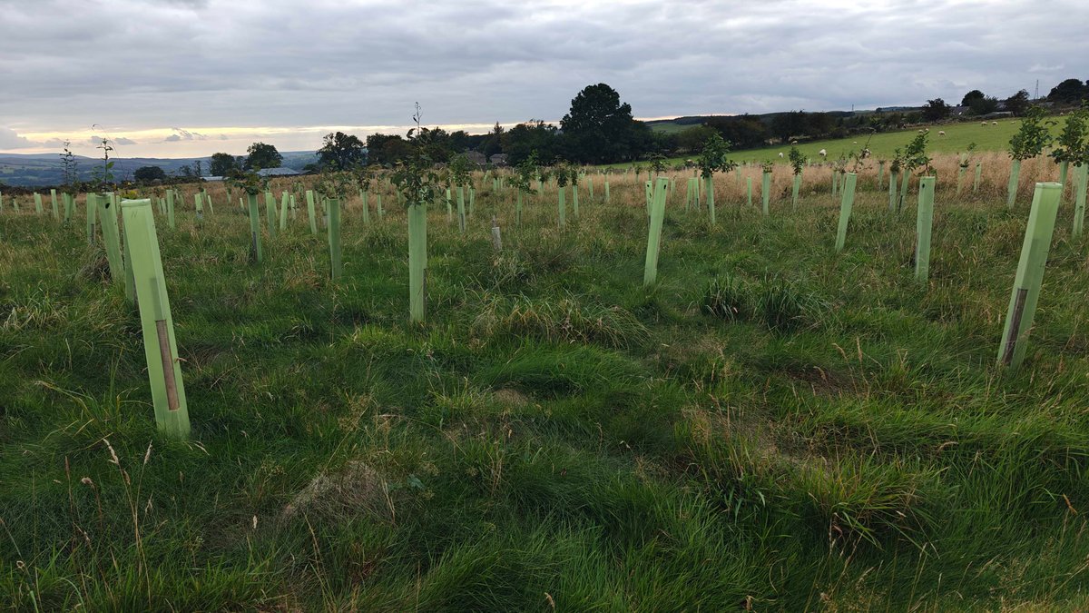 Trees were planted as bare rooted 40-60cm whips and were protected with 1.2m tree tubes and stakes in clusters of the same species, randomly spaced. Shrubs protected with 75cm shrub guards and stakes. Random gaps were left to provide open areas in the woodland.
