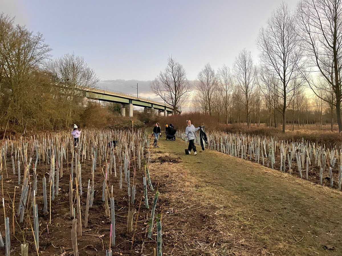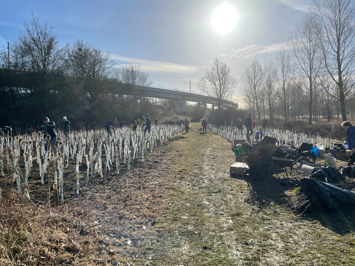 The sites for the forests are on a thin strip of greenbelt between the village of Ickleford and Hitchin’s industrial area. The landowner has opened the space up to the public and is improving facilities for more access, with changes including allotments, orchards, cycle paths, dog walking routes, and plans for a pet cemetery. We teamed up with Dream For Trees to plant thousands of trees near a chalk stream that runs through the land, with Ecologi providing the funding for the trees, us handling species selection and logistics, Dream for Trees finding local volunteers, and Phil from Protect Earth running the planting day showing over 100 people how to plant all these trees.