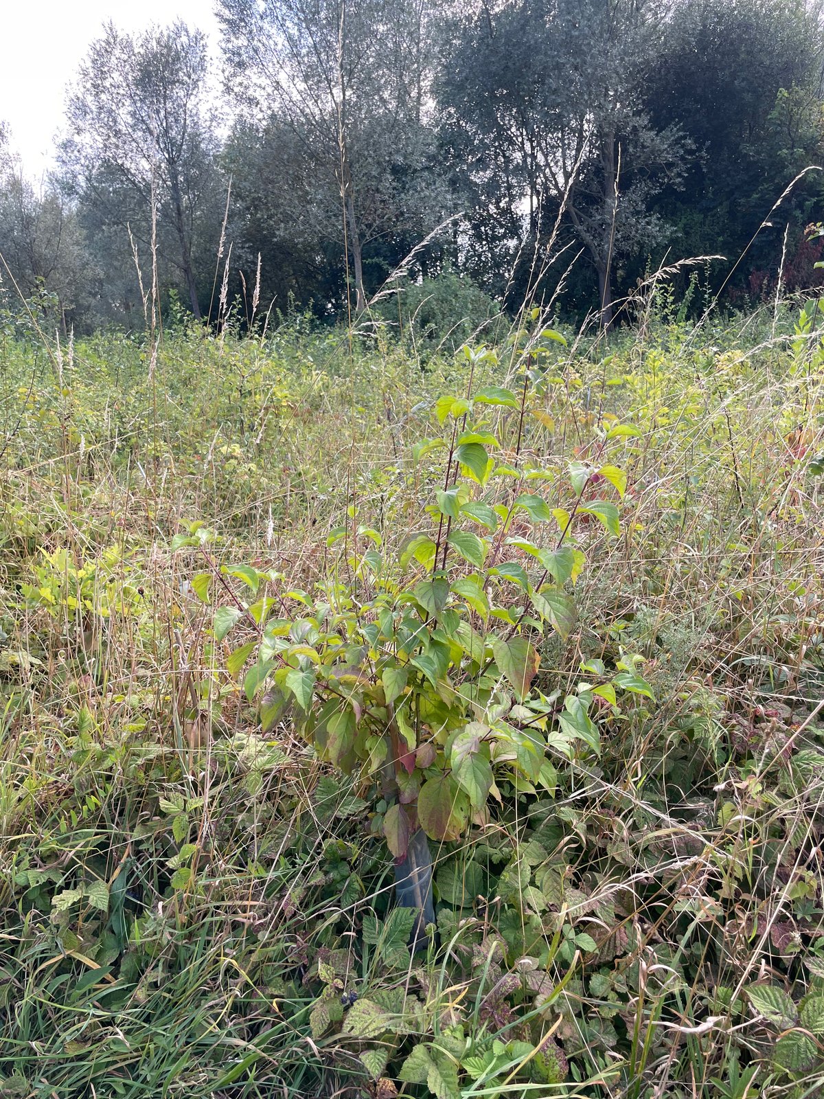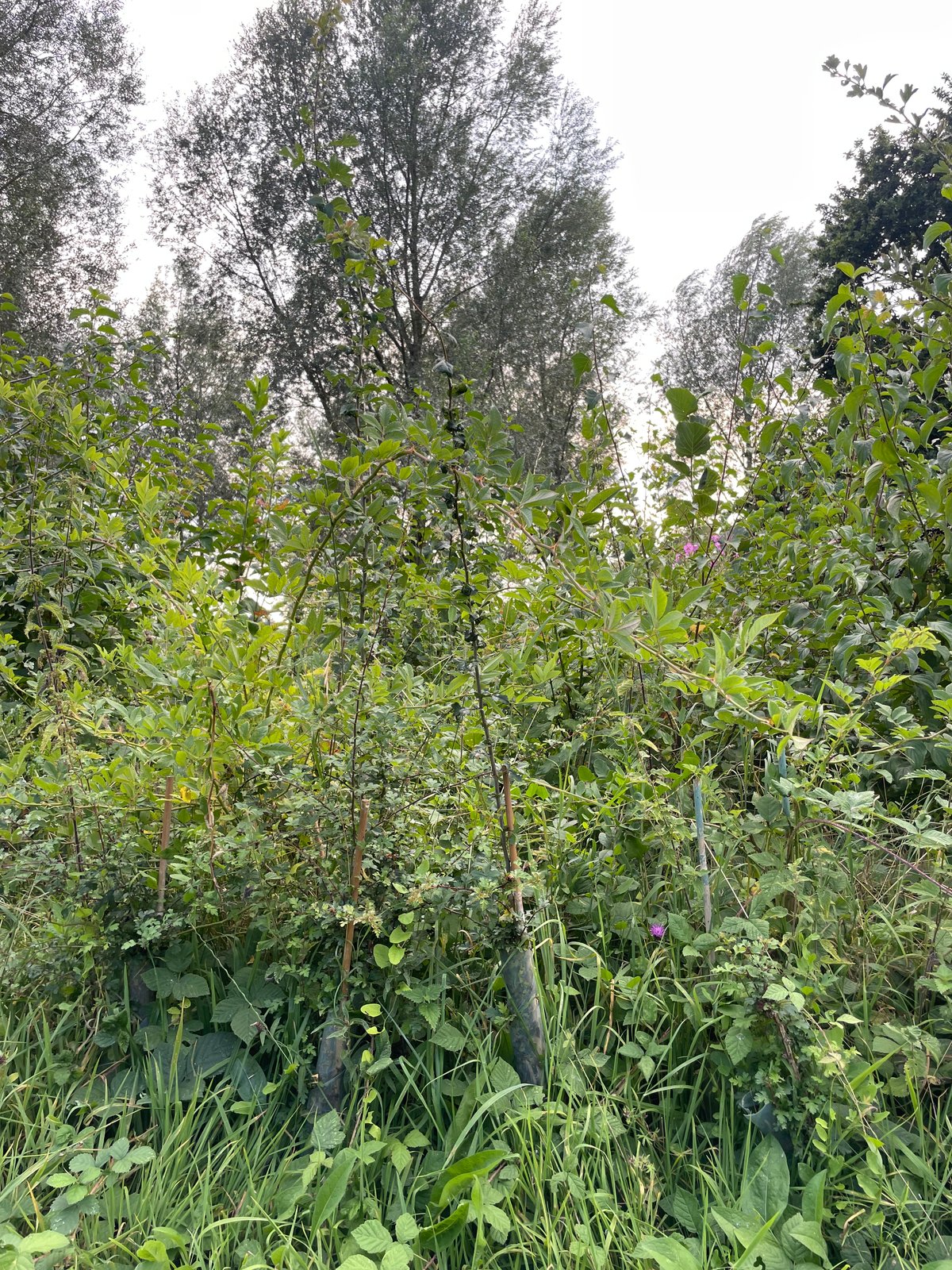 Once a miniforest gets going it’s an awe inspiring thing. In two years these trees were so dense it was impossibly to get in there and count exactly how many were alive or dead, but that’s not the point of a miniforest. The point is to create dense diverse habitat quickly, and that’s clearly happened here. Most of the trees were above head height, and there were no gaps. The miniforests are off to a solid start and no replanting is needed.