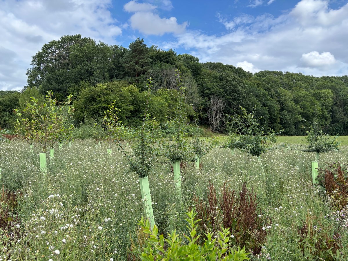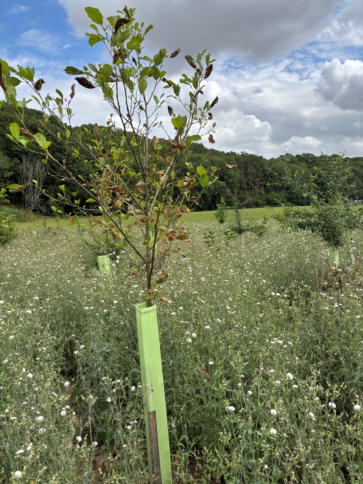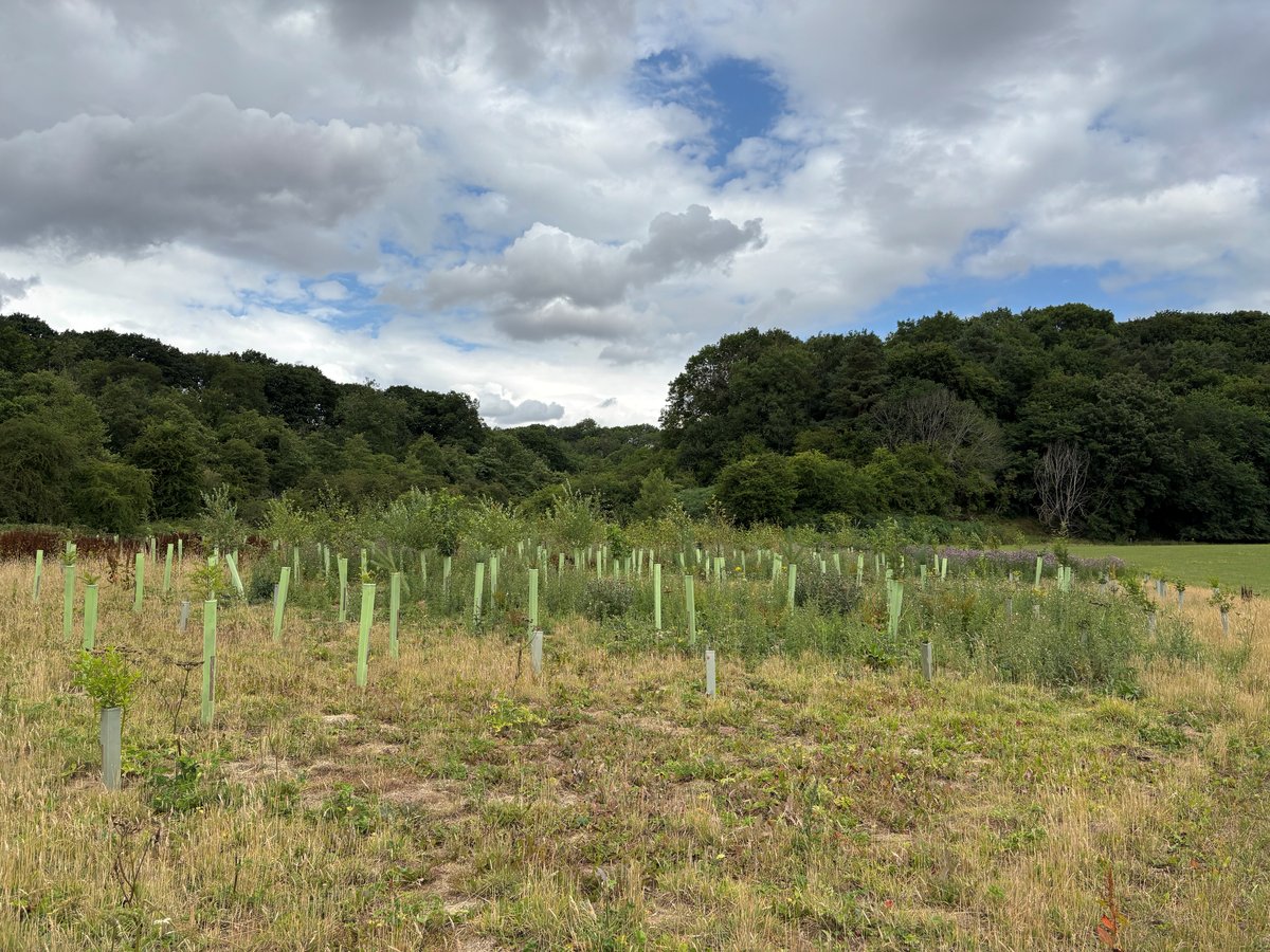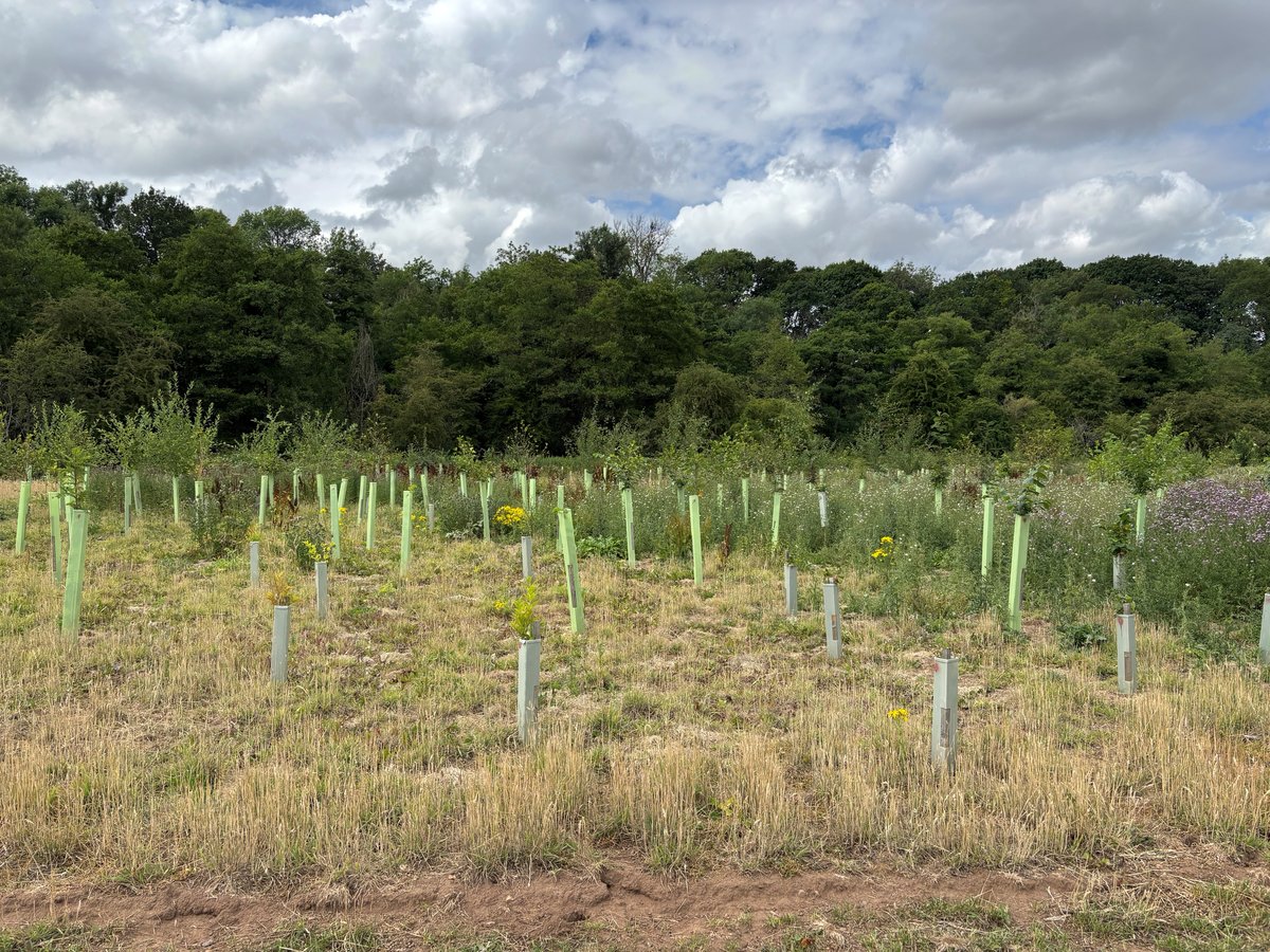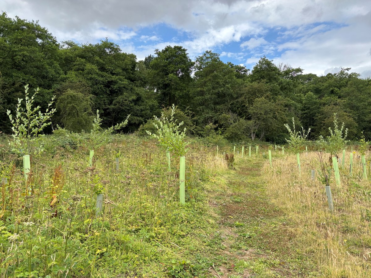 Trees were planted as bare rooted 40-60cm whips and were protected with 1.2m tree tubes and stakes in clusters of the same species, randomly spaced. Shrubs protected with 75cm shrub guards and stakes. Random gaps were left to provide open areas in the woodland.