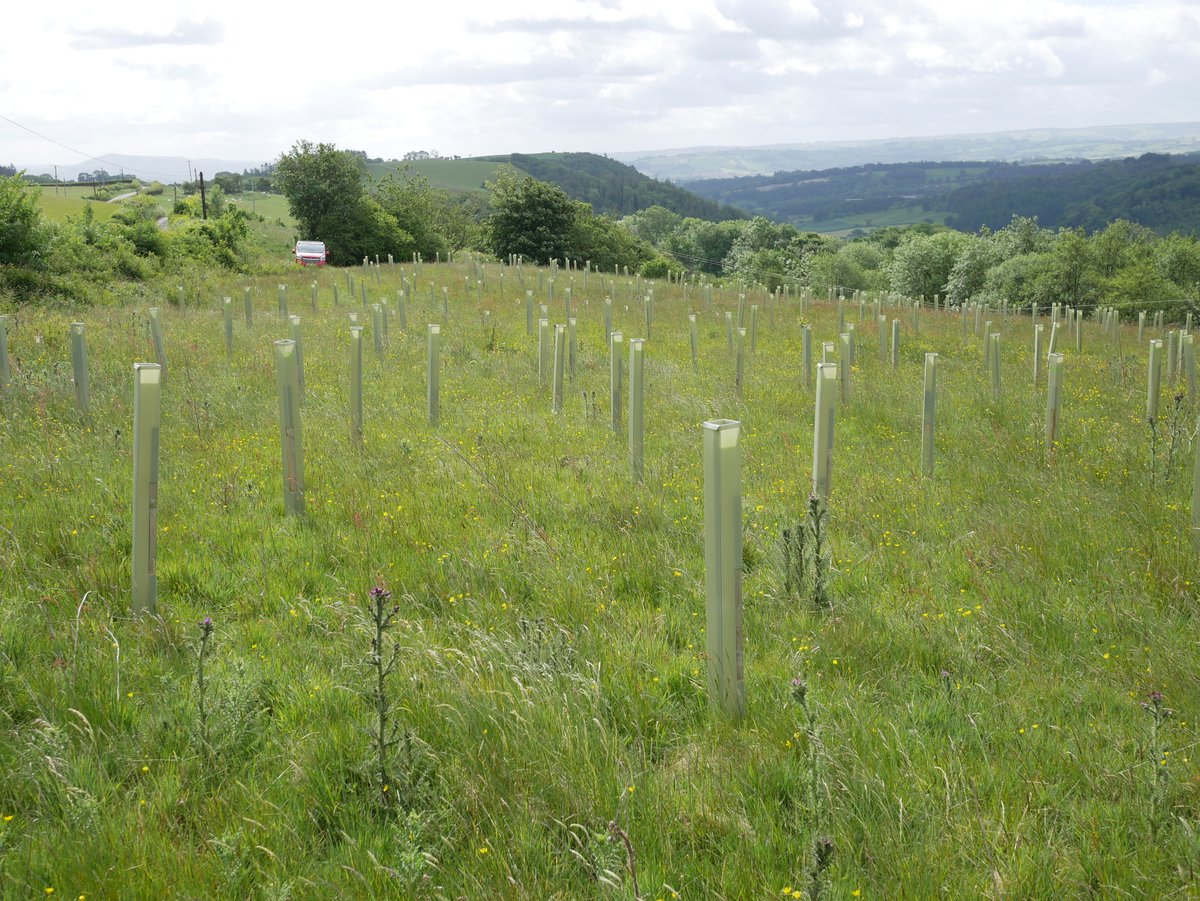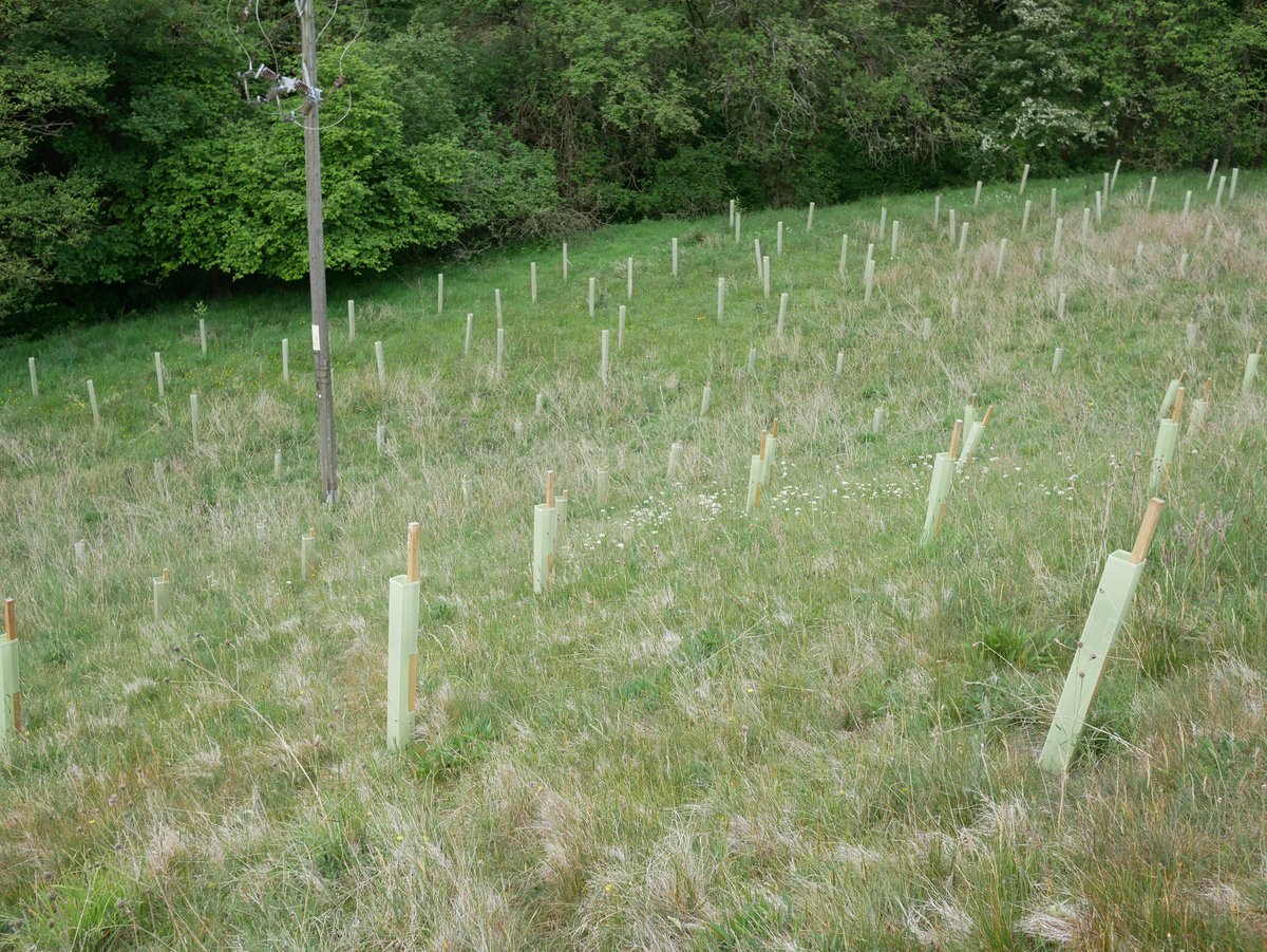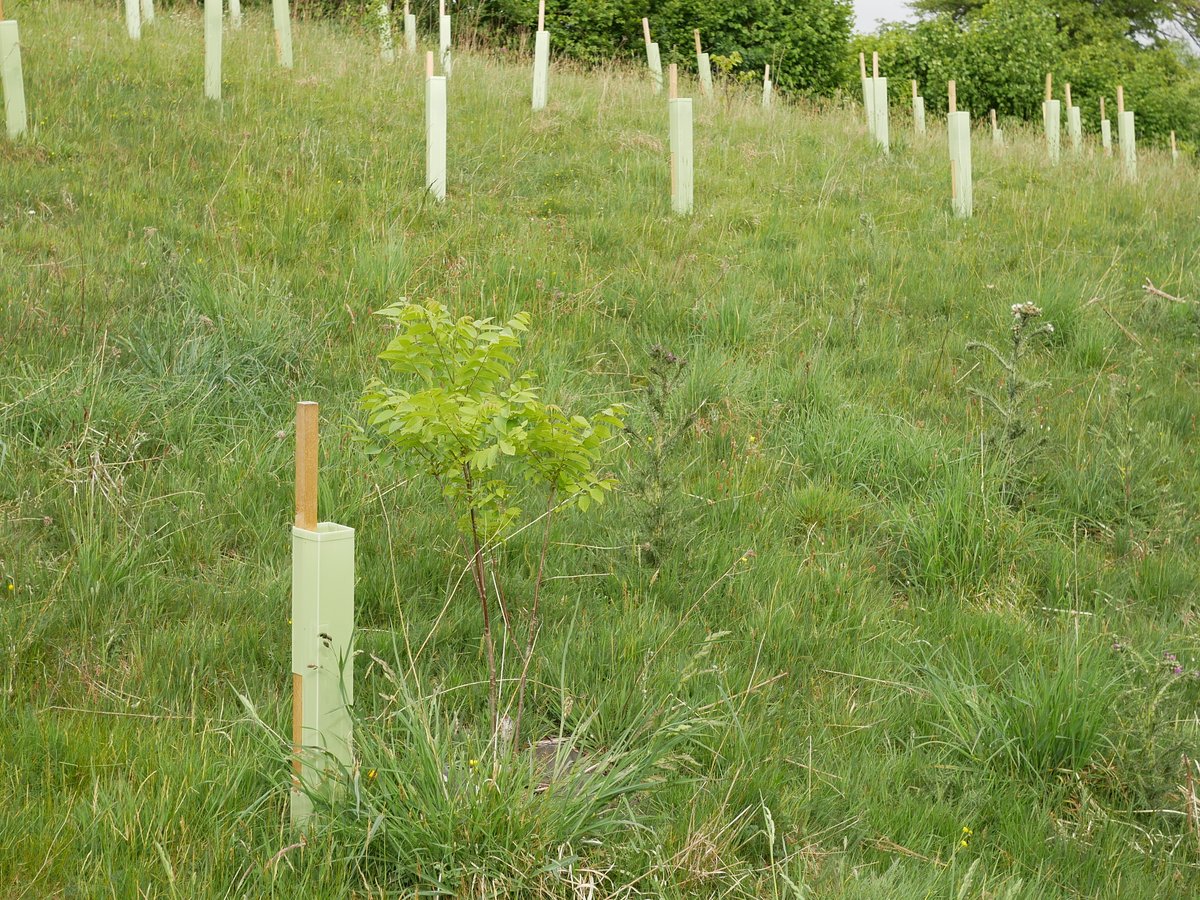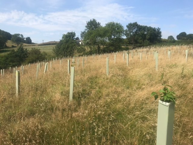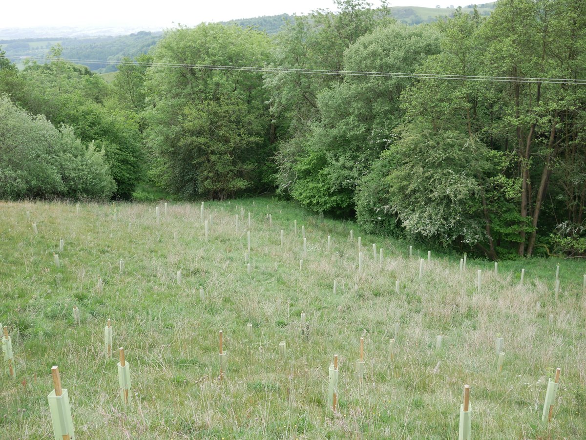 Overall impression - very good. Trees doing well, all shelters vertical - site looks well looked after. 92% survival rate. The Landowner said We have seen hares, lots of mice and also a big deer possibly roe - certainly bigger than muntjac and we have found antlers! The newer trees are virtually 100% fine, so far. The older ones have suffered though, with roughly 15% dead to date. There are lots of trees popping up naturally and doing very well without any assistance from humans. Alder is doing very well in the wetter areas (some over a metre tall), and there are some small oak saplings dotted about. Hawthorn is spreading like mad - no need to plant any more of those!I In May and June we have done a little maintenance, straightening posts that were leaning over, removing grass/weeds from tubes etc.