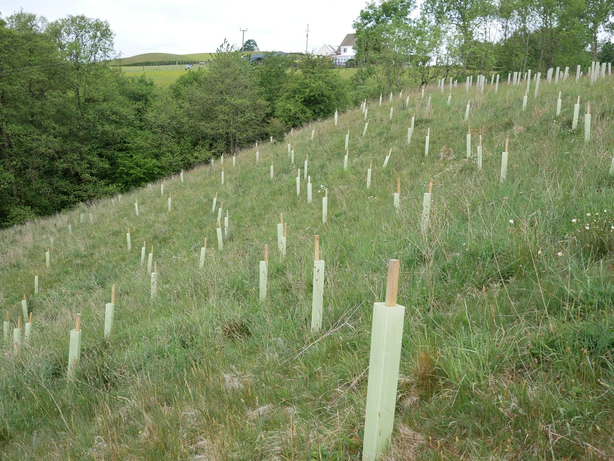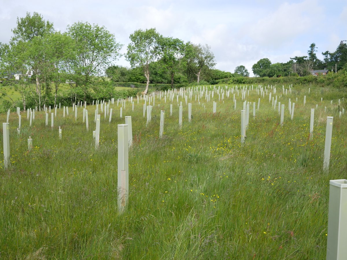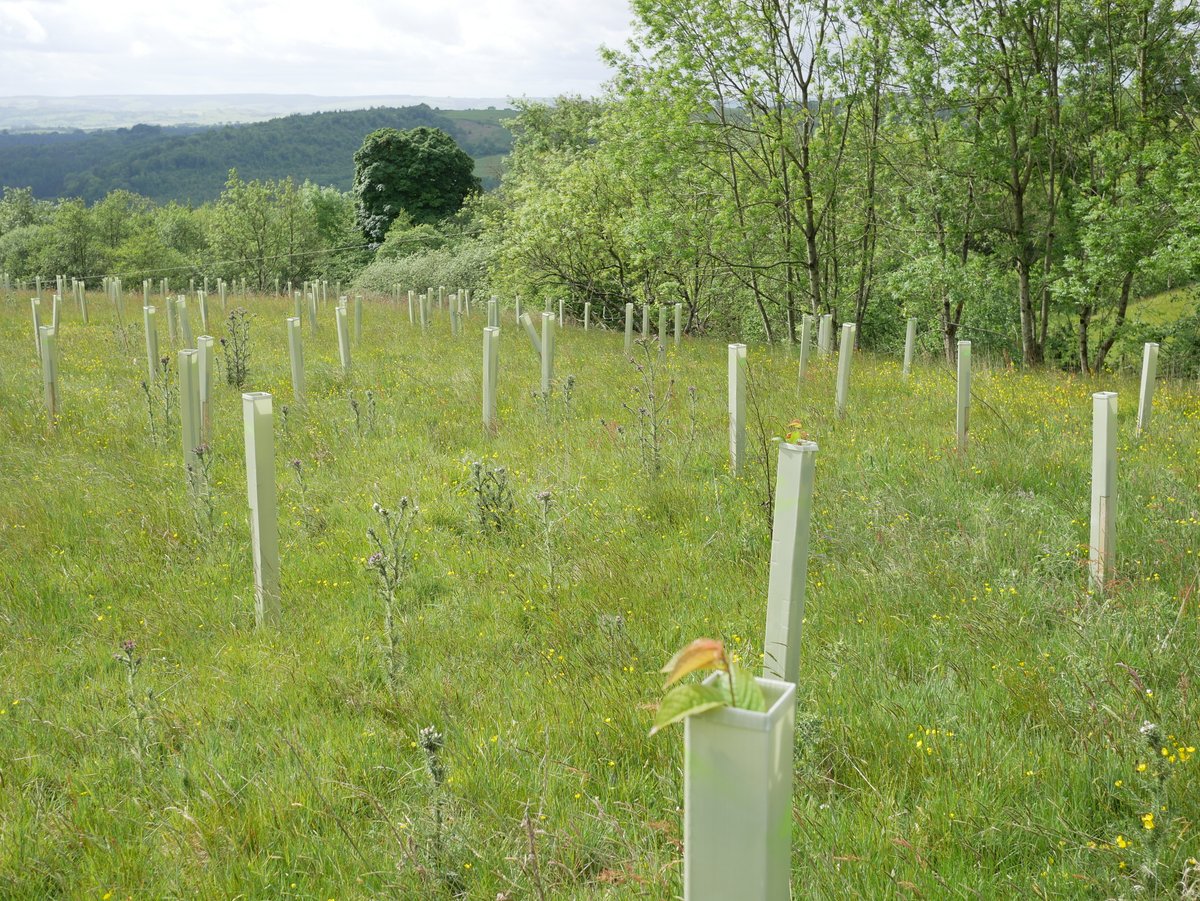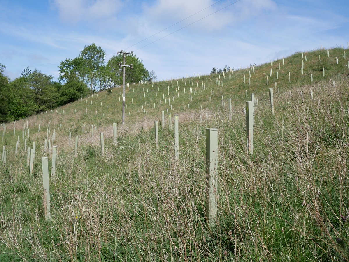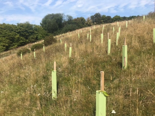 Overall impression - very good. Trees doing well, all shelters vertical - site looks well looked after. 92% survival rate. The Landowner said We have seen hares, lots of mice and also a big deer possibly roe - certainly bigger than muntjac and we have found antlers! The newer trees are virtually 100% fine, so far. The older ones have suffered though, with roughly 15% dead to date. There are lots of trees popping up naturally and doing very well without any assistance from humans. Alder is doing very well in the wetter areas (some over a metre tall), and there are some small oak saplings dotted about. Hawthorn is spreading like mad - no need to plant any more of those!I In May and June we have done a little maintenance, straightening posts that were leaning over, removing grass/weeds from tubes etc.