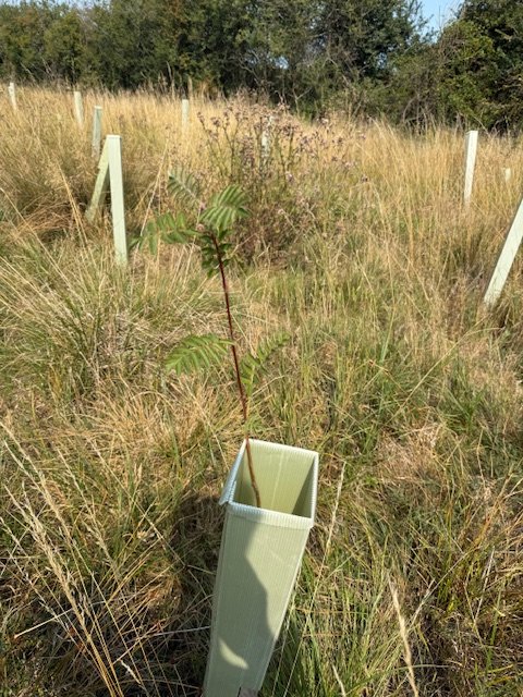 The landowners live on a cider orchard with over 200 trees, and also own a meadow with a public footpath running through it which they wanted to plant a variety of native species in, for both carbon sequestration and to boost biodiversity in the area.